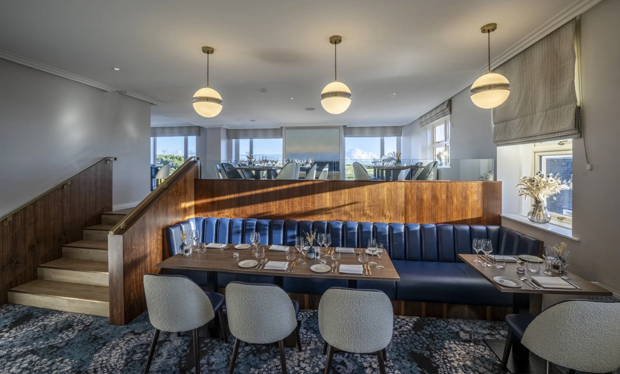 Our collaboration then extended to the Udny Arms Restaurant, where we delivered elegant dining chairs in bespoke upholstery, table bases and tops for an elevated dining experience. Materials and colours were carefully selected to complement the coastal views and natural textures throughout the space.